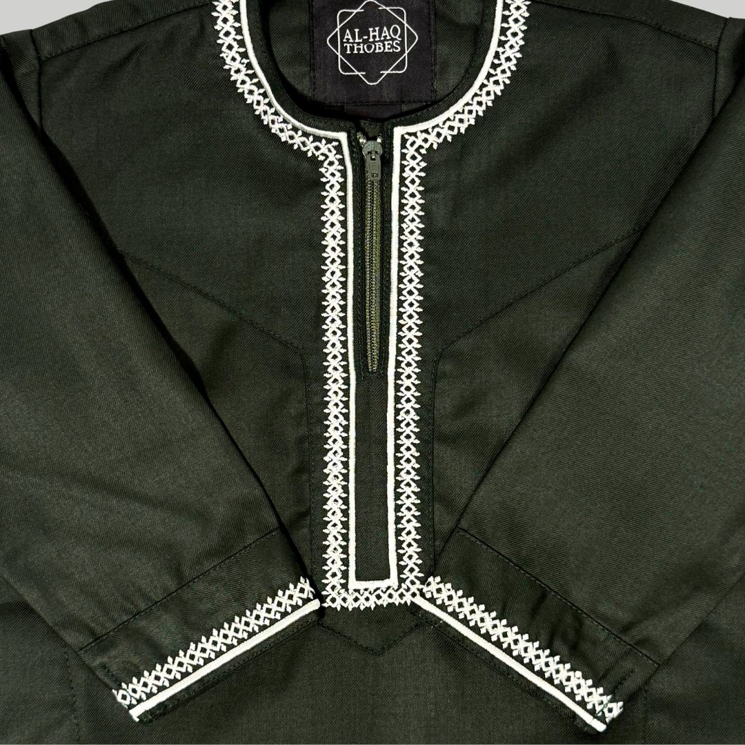 ثوب عماني مطرز فاخر باللون البيج للأطفال الصغار
