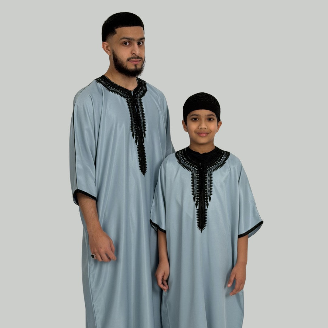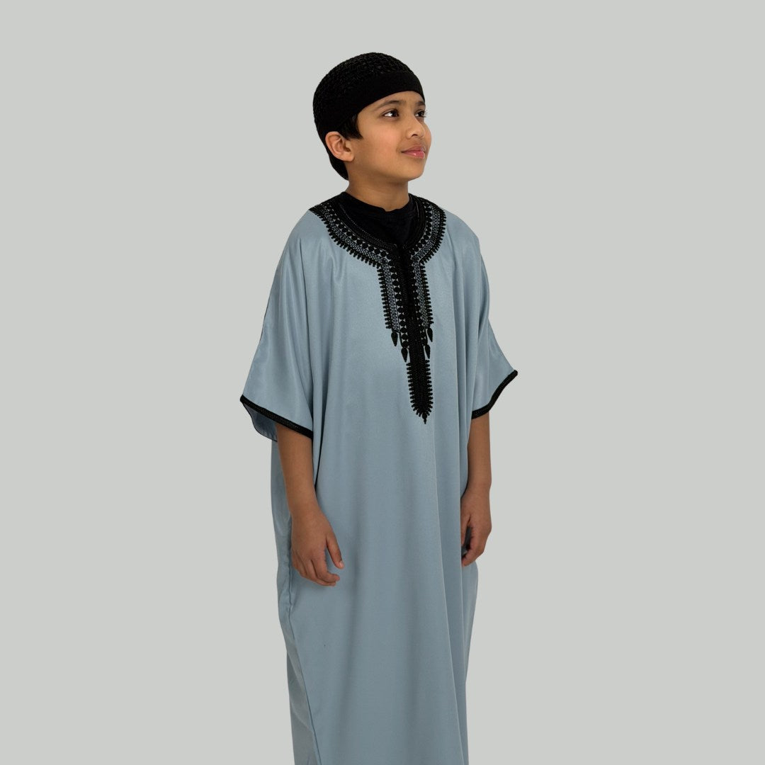 Boy's Luxury Glacier & Black Zipped Moroccan Gandoura