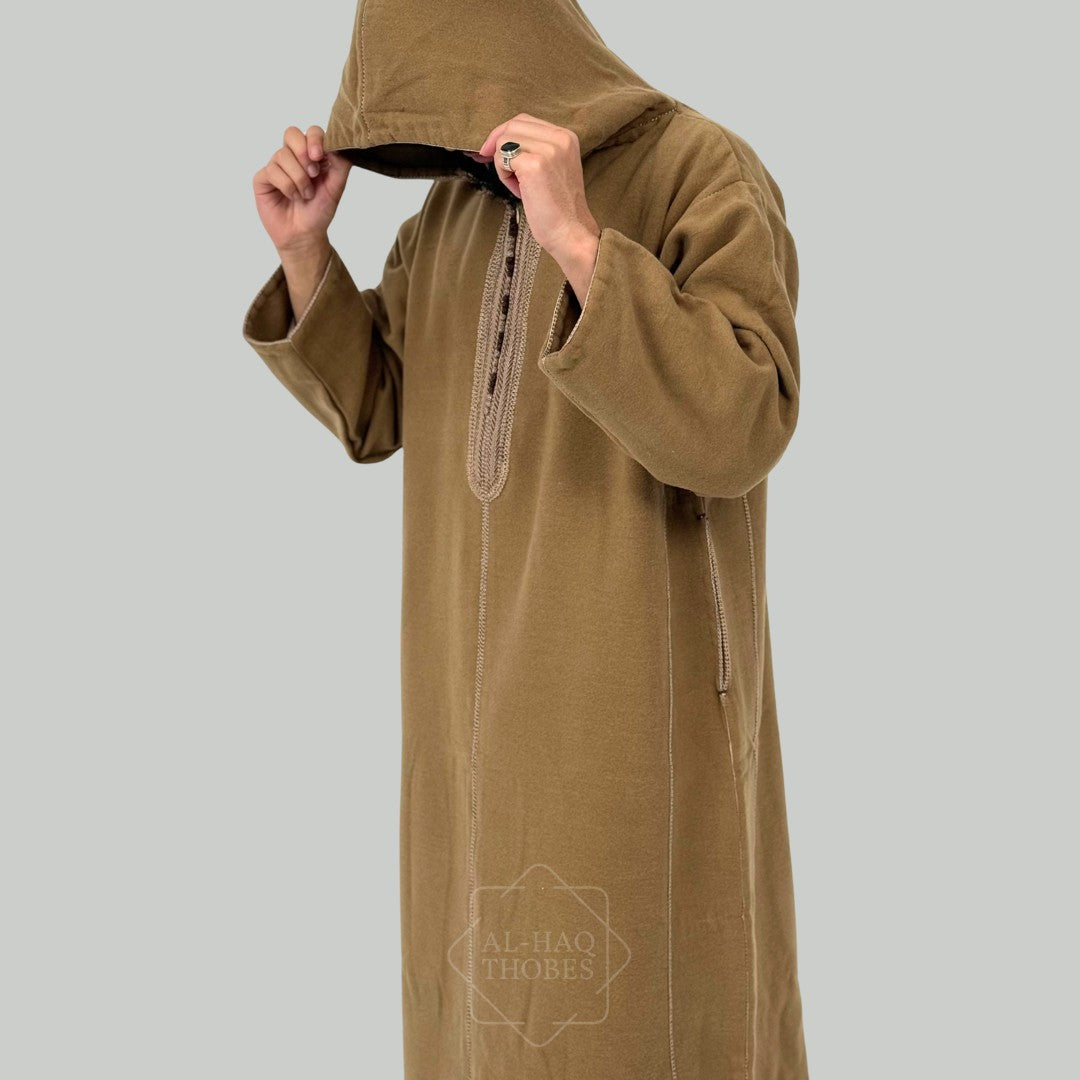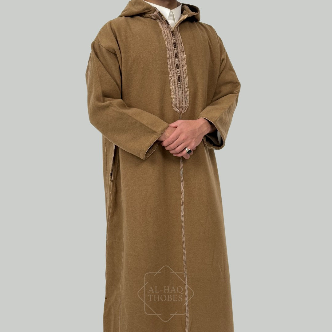 Luxury Caramel Brown Hooded Moroccan Thobe