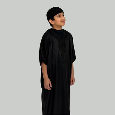 Boy's Luxury Obsidian Black Zipped Moroccan Gandoura