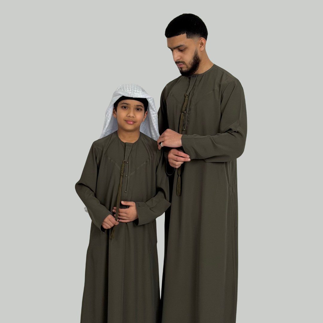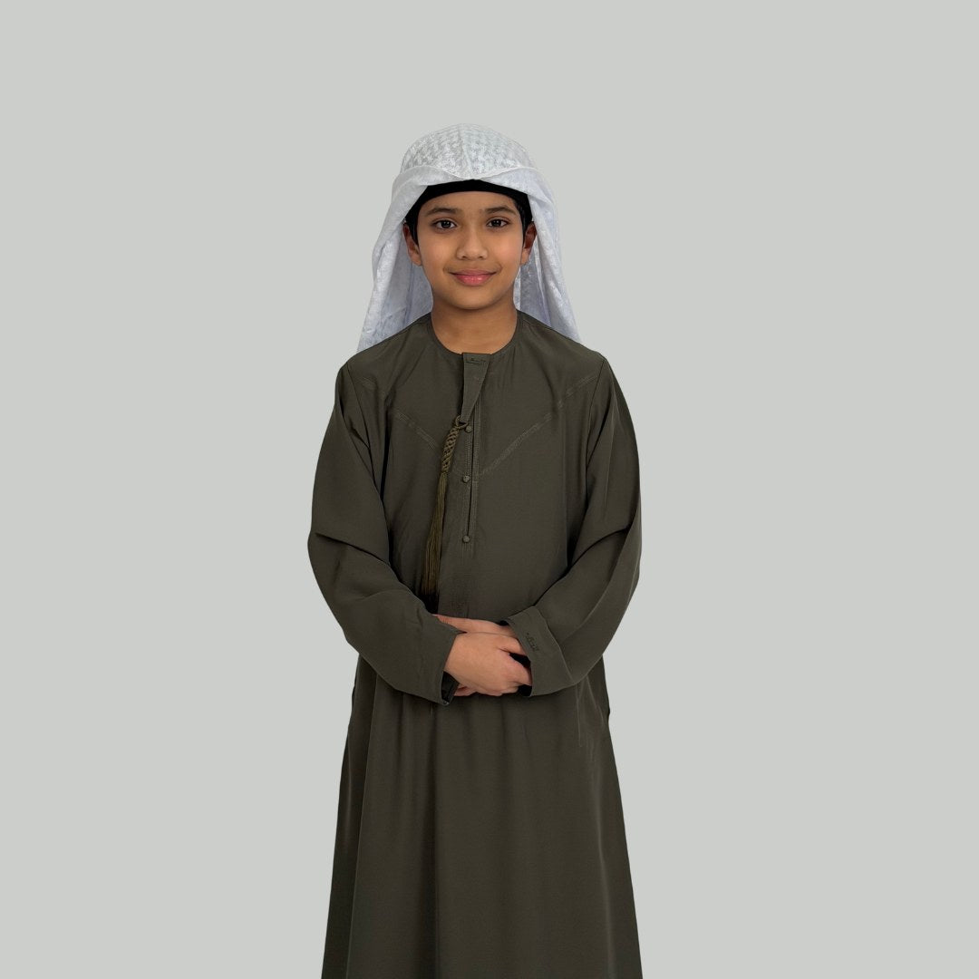 Boy's Luxury Olive Green Lightweight Emirati Thobe